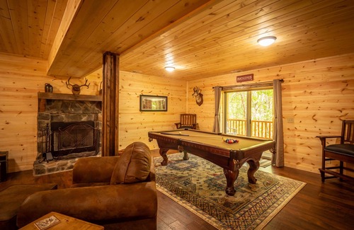 This exquisitely appointed, newly built lodge is sure to become your new home away from home. The main floor kitchen and living room area feature vaulted ceilings with a wrought iron and glass chandelier. Large picture windows looking out into the picturesque woods let in the natural light and beauty of the surrounding area. The eclectic pieces of art and furniture make the inside as grand as the outside. This lodge has 2 master suites with en suite bathrooms and a party deck large enough to ensure space for everyone!