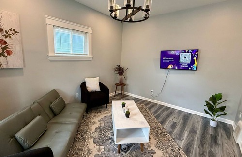 Enjoy modern comfort in this stylishly designed home, perfectly positioned in a prime central location. Nestled on the ground level with just five steps leading to the unit, this thoughtfully arranged space boasts one bedroom comfortably accommodating up to two guests.