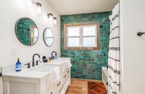 This completely renovated guest house sits on 7 acres of beautiful countryside. Completely private, guests can relax on the deck by the firepit, or enjoy a game on the TV while soaking in the hot tub. Inside are two beautiful primary bedrooms, each equipped with a functioning kitchenette and incredible views of the landscape.