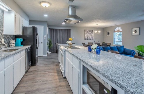 Relax in the stylish 4BR 2Bath house nestled in the tranquil and family-friendly neighborhood in Warner Robins, GA. Enjoy the serenity and unwind on the enclosed patio while being just a few steps away from the picturesque lake and all city's attractions.
