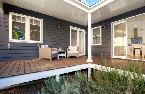 - Outdoor Space: Entertaining deck with BBQ and outdoor dining, Additional deck at side of house, Small backyard (not fenced), Landscaped gardens, Outdoor shower