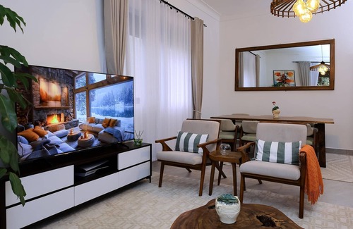 Located in Kololo, this lovely apartment boasts 2 bedrooms with a king and queen bed, 2 bathrooms with modern amenities like a bidet and shower, and an additional living room space with a cozy sofa bed. Guests can enjoy the convenience of a washing machine, iron, hair dryer, AC, and WiFi during their stay. Our place is equipped for both long or short stays to make your holiday one to remember.