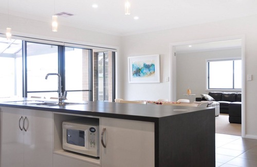 Main open plan kitchen/dining opens via double doors to formal lounge with an electric fireplace, creating a cosy & relaxing atmosphere at night. Again, with a large flat screen TV with foxtel. Office nook with free WIFI for those moments when you just can't leave work behind.