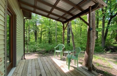 Sleeps 6.. Less than 10 minutes from Indiana University, this is the rental of a private cabin on a larger property than includes 2 cabins and a house. You have your own cabin, but shared access to the grounds, hot tub and pool. The cabin has 2 tiny rooms with Twin X-long mattresses and a loft with 2 full floor mattresses. This cabin only has a half bathroom, with a toilet and sink.