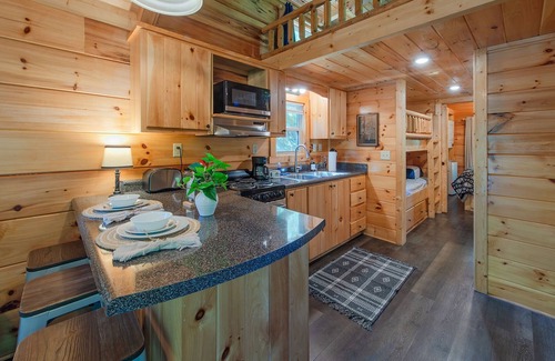 Welcome to Thomas Cabin at Wauhatchie Woodlands, a Timberroot Rustic Retreat. During your stay, you will have access to a range of amenities, including a private hot tub, furnished back deck, fire pit, covered front porch with a charcoal grill, and a charming space surrounded by nature. Thomas Cabin sleeps up to six guests and features a main bedroom, built-in bunk beds, and a sleeping loft and is equipped with everything you need to make the most of your time in Chattanooga.