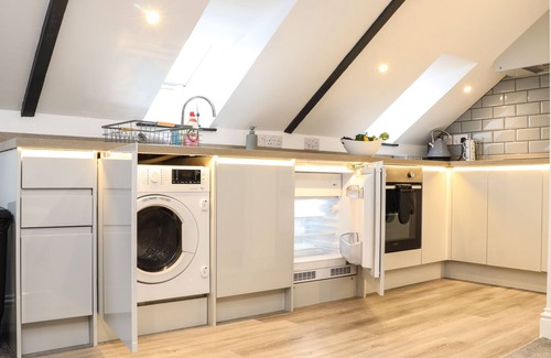 Amenities: Gas central heating, toiletries and slippers. Electric oven and induction hob, microwave, fridge with icebox, washer/dryer. Smart TV with Netflix, WiFi. Fuel and power inc. in rent. Bed linen and towels inc. in rent. Off street parking nearby for one car. Sorry, no pets and no smoking. Shop 0.2 miles, pub 0.1 mile. Note: This apartment is accessed via the first floor, where you will enter a private entrance and ascend a spiral staircase to the property. Note: This property is not suitable for those with limited mobility due to the narrowness and steepness of the spiral staircase. Note: This property does not accept infants or children
