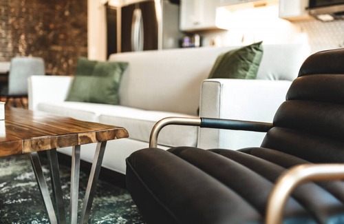 Renovated in 2022, this boutique nightly rental features a modern industrial feel, plush new amenities, ultrafast Wi-Fi, and a prime location steps away from downtown shopping & dining.