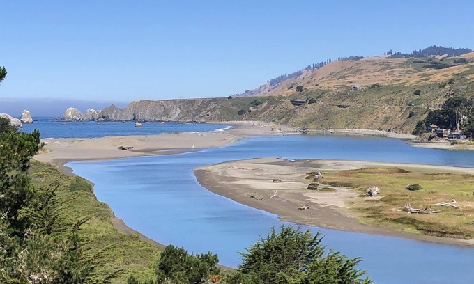 Tidesong is situated on a hill in Goat Rock State park overlooking the Russian river estuary, with views of the Pacific Ocean.