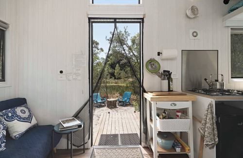 Tiny Hideaway at Cloverhills by Tiny Away is a charming tiny home located in the Shire of Macedon Ranges, surrounded by stunning rural landscapes, eucalyptus and pine forests, and close to the famous Hanging Rock.