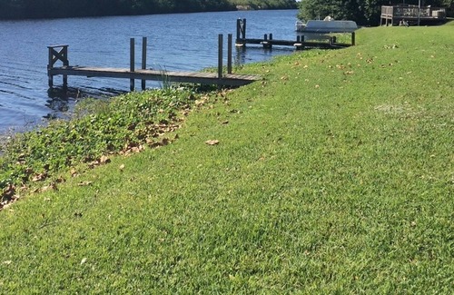 The community sits on a canal and there is a boat ramp and fish cleaning station for community use at the end of our street. Although there is lake access it is a little circuitous. Most people take their boats 4 miles down 78 to Harney Pond, where there is a big boat launch with docks. Harney is just opposite Reservation Road. There is Beck’s convenience store (with fishing supplies) at that corner, along with the Duck Pub (good food and dive bar) as well as the best BBQ food truck on the weekends — Essie Mae’s Old South BBQ at the corner of 78 and 721. We are also close to a Dollar General and just down the street from the Aruba Bar & Grill!