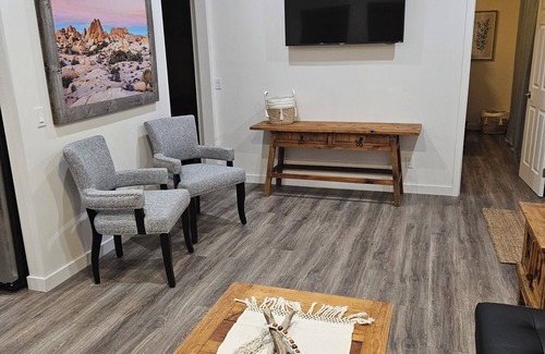 Tiny Living in Joshua Tree CA: Fully Furnished Home is located in Joshua Tree. Tiny Living in Joshua Tree CA: Fully Furnished Home provides accommodation, featuring Air Conditioner, Security/Safety, Bedding/Linens, among other amenities. This House features Air Conditioner, Security/Safety, Bedding/Linens, to make your stay a comfortable one.