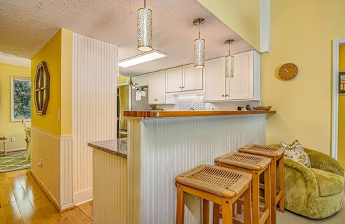 Just a Splash away from the pool in the Royal James neighborhood located in the middle of Bald Head Island. This condo offers a top floor with a balcony overlooking the peaceful Maritime Forest. It is a three bedroom two bath home. The master has a king bed with attached bath with shower. Across the hall is a queen bed with a hall shower. The loft is perfect for other members of the family to have their own oasis with two twin beds. This updated condo is just a walk away from the community pool and a short drive from all of the islands great amenities.