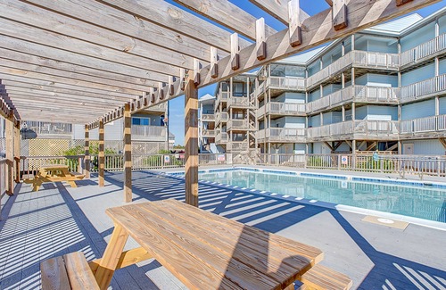 A little bit of salt and sunshine can cure just about anything, so let the waters of the Seven Seas wash your worries away! This top-floor, oceanfront condo, perfectly situated in the heart of Rodanthe in the Hatteras High building of the Resort Rodanthe, is only steps from the beach and the Rodanthe Pier, with one of the best views around. Enjoy some time with friends down at the community pool, then head over to the picnic area to take advantage of the provided camp-style grills.