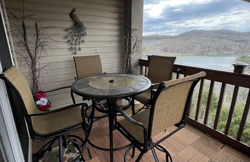 Welcome to our cozy 2-bedroom, 2-bathroom vacation rental located in Branson, Missouri. This lakefront retreat is perfect for your next family trip, offering resort-style amenities and a prime location. Great location on Indian Point! Beautiful views off of the large deck of this top floor two bedroom two full bath condo. Easy access to Silver Dollar City, Table Rock Lake, restaurants and food trucks.