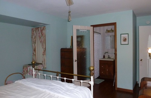 The house, originally built as a hunting cabin in the 1960’s, has been expanded and modernized for full year round comfort. A fully equipped open kitchen looks to a cathedral ceilinged living-area with French doors that lead out to a private enclosed porch.