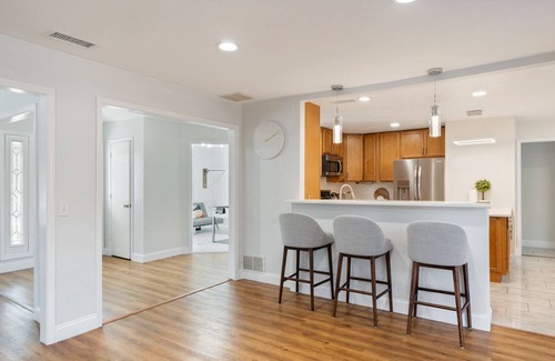 Gorgeous!! Huge! Perfect for traveling families!!Comfortably sleeps 14 people, Tons of open space and beautiful backyard with pool. Game room and ping pong are always a hit!! Two kitchens and two washers & dryers make life easy!!