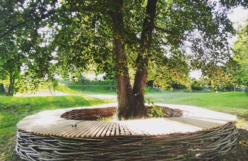 The comfort of our guests is enhanced by 4 bathrooms, 2 large living rooms, one of which is equipped with a traditional stove with a heated bed placed in an open kitchen and several inside and outside relaxation areas. The huge garden that surrounds the house is inhabited by old trees, cheerful birds and little wild animals. It was carefully arranged to become a safe playground for children, a private green spot where you may hide from heat in the Summer or to become a private snow slide for having fun during Winter.