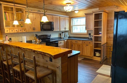 3 Night Minimum Stay. 5 bedroom, 3 bathroom trailside unit with access to Lifts 2 & 3, located next to the former Alpen Inn. Large open concept living room, dining room with new gas fireplace, electronic game table (40+ games) and seating for 5 at countertop in kitchen. Flat screen TV with Roku. Modern appliances in kitchen with double oven, dishwasher, and microwave. All the comforts of home with a newly added washer & dryer. Newly remodeled 4 bedrooms located on main level with two full bathrooms. One of the bathrooms is recently remodeled (summer 2024). Staircase leads to second floor living area. 1 bedroom on upper level off of living area and full bathroom. Large deck facing the ski hill for the ski-in ski-out convenience. Outdoor gas grill. New lower back deck. New sun deck right next to the ski run. Prime snowmobile access from this unit. Dog friendly (new as of the 2024-25 ski season). Sleeps 12.