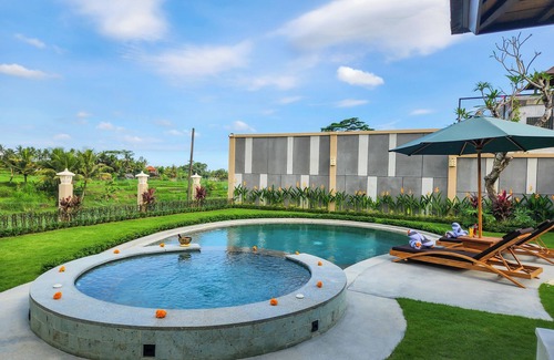 Looking for the ultimate peaceful escape in Bali? Welcome to your private 2-bedroom villa, perfectly nestled among lush rice fields and just 15 minutes from the vibrant center of Ubud!