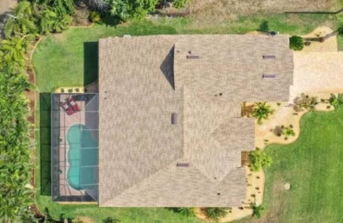 The outdoor living space, the great location, the open layout, and the 5 bedrooms are the primary reasons we fell in love with this home. The outdoor area is what really separates this place from almost all others. The large screened in outdoor living space is like being at a mini-resort. This area features a beautiful heated pool, sun deck, outdoor living room, outdoor patio table set and a TV. The pool has a waterfall feature for ambience to entertain or relax to the tranquil sound. The large covered lanai has 2 ceilings fans to keep you cool while you enjoy the outdoors. Back yard is very private and tropical. Surrounded by a beautiful mature wall of Christmas palms and Areca palms! Truly our favorite area of the house. This outdoor area is where we spend a great deal of our time.