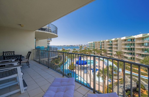 Get away to the Gulf with this lovely 2-bedroom 2-bathroom condominium. Located on the 4th floor of Phoenix on the Bay, the retreat sleeps six.