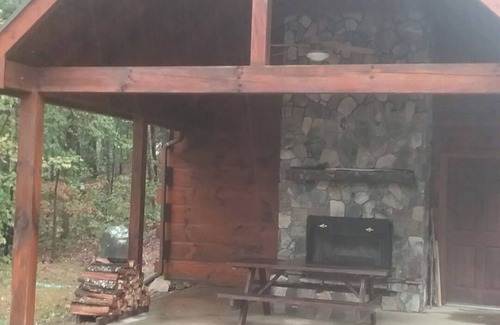 Escape to a cozy cabin in Blue Ridge for a fabulous stay. This 2-bedroom retreat features a king and queen bed, perfect for a small group or family. Enjoy the convenience of AC, heating, extra wide porch on 3 sides, and other essential amenities. With 2 bathrooms equipped with hair dryers and showers, guests can relax in comfort. Additional spaces like a living room with a sofa bed and a loft with futon provide extra room to unwind. There is an outdoor fireplace and patio. We look forward to welcoming you to our place.
