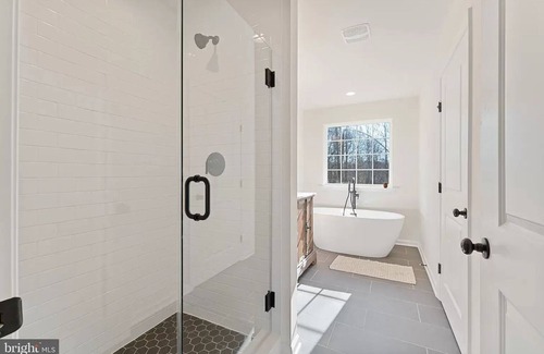 Luxurious Master Bathroom: Indulge in the elegance of a free-standing tub and custom tiles.