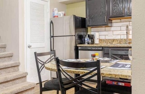 Have fun with the whole family at this stylish, well kept community! Great amenities from swimming pool, to hot tub, indoor games, outdoor games, barbeque grill, hammocks for your relaxation, outdoor eating, gym, coffee bar and many other options to make your Orlando trip a really memorable one! Sleep in the closest vicinity to the wonders of Orlando Florida like: Universal Is. of Adventure, Volcano Bay, S/World, Walt Disney World, Mall @ Millenia, the Crayola, Topgolf, &tons! The Apartment itself is located on the 2nd level with short steps and is considered a "walk up" with no elevators. It has high ceilings, high-end fans circulating air to cool all the rooms but also serving as a stylish focal points in the rooms. The Apartment sleeps 5 people comfortably. 2 Double beds, 1 King bed and a couch. Extra blankets are available in some drawers. Please to avoid losing some items, leave and use everything within the Apartment. The adjustable thermostat, the WiFi availability, the Smart Tv with Netflix availability will be relaxing for you after a long day "out there"! Comfy beds in both down and upstairs, the hot or mildly warm showers depending on what you want, the peaceful and quiet environment will all give you a nice rest from the rashness of the city and the hectic, busy, long and tiring days. It's also a place tailored perfectly for a calm and quiet environment, especially, with business professionals who want to catch up with work in a quiet place. The Apartment also has a great well-stocked kitchen with a big fridge, a stove with an oven, a powerful microwave, pots and pans, some needed cooking utensils, cutlery, plates, mugs and glasses. You'll be able to freely cook, bake and refrigerate all your fresh and cooked food. You can also open the door and enjoy the scenery at the porch or take advantage of the Complex well kept yard, on the benches within the beautiful Complex. 1-On entering the beautiful Fusion Orlando Residential community, turn right to Building #2. The Apt. is #226. 2-Look for parking in any empty space. (Avoid DESIGNATED spaces). -Guests are allowed only 1 parking space or 2 depending on availability. 3- Put a Parking Permit in your car to identify you as a guest at 226 and to avoid being towed. Please remember to return the Parking Return the original Parking Permit on checking out or use a copy. 4. The Complex is well manicured and very well lit at night. Guests can access the pool and other entrances like the 24/7 Gym, using the fob attached to their the key. 5-Any questions please don't hesitate to send a message to the Host and will be answered Asap. 6- Guests can use the gym 24/7- but The pool from dawn to dusk. There’s no guard; you’re on your own at the pool (You’re solely responsible for u &your family) 7-No trash can be left behind! Any trash picked by management cost your host$$$ and the bill will also be sent to your booking platform for a refund so - please remember to cooperate! 8- The trash can be taken to bins just behind Building 1 or at the opposite extreme end of the complex. 9- Use the outside grill near the pool and eat there if you want to. NO USE of the following: - Grilling at the Apt. porch is not allowed. - Using the Fire pit or fire places inside the Apt. isn't allowed. -Leaving trash at the porch or throwing it any place in the Premises. As hosts, we are reachable through the Airbnb App as long as it before 11pm.Send Airbnb messages or call but don’t sleep on unresolved issues which could have been unknowingly caused! Our team’s goal is so you can have comfortable and restful stays! This Apartment has a co-host, a Professional cleaner and an additional helper-you're well taken care of but Please, COMMUNICATE! Apartment is situated in the Universal neighborhood of Orlando. This area is renowned for its proximity to major attractions, including Universal Studios Florida and the International Drive entertainment district. Residents enjoy easy access to a variety of dining, shopping, and entertainment options, making it a vibrant and convenient place to live. Assigned Parking Spaces: Each guest is provided an assigned parking space. Parking Pass Required: A parking permit must be displayed on your vehicle at all times while parked. Towing Policy: Vehicles without a visible parking pass will be towed at the owner's expense. 1. WiFi Name: SpectrumSetup-93 Password: widespark820 2. Quiet Hours: 11:00pm - 7:00am 3. Remember to hang a Parking Permit in your car and return it at check -out 4. We ask that you please put all the trash using trash bags found under the sink and place in front of the oven corner where the cleaning crew can easily see it. Never put trash on the porch. If trash is too much take to the bins behind Bldg#1. Cleaners will do the rest. 5. The cleaning crew promptly comes in around 11am on check-out days; so please, inform the host if there are any delays so your privacy can be protected. Some nearby Places for Dining: 1. Salads and More 2.Grande Cheese Company 3. Signature Pizzas 4.Solorzano's Pizzeria 5. The Cheesecake Factory 6. Vito's Chop House 7.Seasons 52 8. Buca di Beppo 9.Giordano's 10. Cafe Tu Tu Tango 11. Shogun Japanese Steakhouse 12. Bonefish Grill 13. Delmonico's Italian Steakhouse 14. Olive Garden etc... all these are within 5-10 from your Apt. of Aboard. The Apartment offers a large fridge to store all your cooked and fresh foods. The fridge also has it's own ice maker so you don't have to buy and carry those heavy ice bags.
