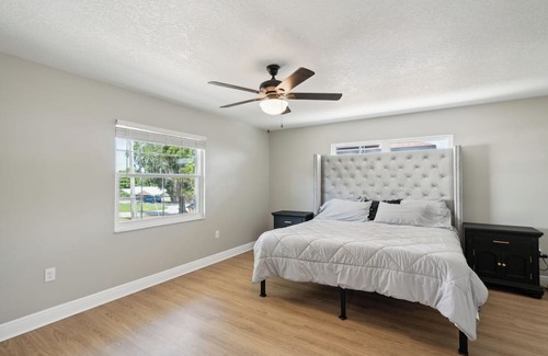 Welcome to our tranquil lakeview retreat, a perfect getaway nestled close to the excitement of Central Florida’s theme parks. This serene escape offers the best of both worlds: the peacefulness of lakeside living and the thrill of nearby attractions. Ideal for families, groups of friends, and your furry companions, our home provides all the comforts and conveniences you need for an unforgettable stay.