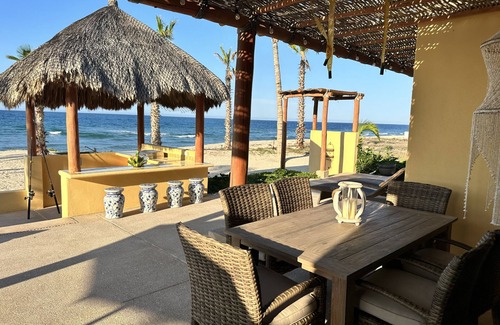 Nestled on a secluded beachfront with breathtaking ocean views, "Tranquil Palms Retreat" is a luxurious 3 bedroom, 2.5 bath haven that exudes peace and serenity. Surrounded by lush palms and endless horizons, this unique home is perfect for those seeking a private retreat. Designed to cater to all your needs, the property features, outstanding indoor-outdoor living spaces, an open plan, living and dining room, a gourmet kitchen, and high-end finishes throughout. Whether you want to soak up the sun on the expensive deck, or take a dip in the crystal clear waters of the ocean, tranquil, palms, retreat, offers the ultimate beachfront escape.