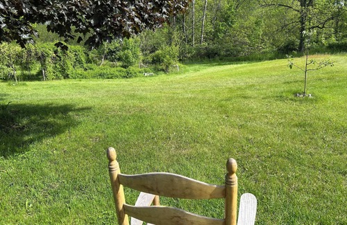 Escape to this excellent apartment in picturesque Greenwich situated on 1.3 private acres, with perennial and woodland views from the bay window. This cozy retreat features 2 bedrooms with a queen and twin bed, a well-equipped tiled bathroom with a shower, and an additional pantry space. Screened in porch, outdoor grill and dining. Perfect for 1-3 people looking for a comfortable and freshly renovated stay. 15 miles to Saratoga, and a half hour from the VT border. Excellent fishing and waterways within walking distance.