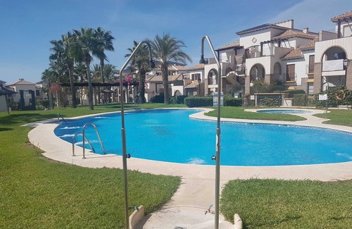 Beautiful family home from home, on immaculate gardens sparkling outdoor pool and kiddies play area, indoor pool for the colder months, onsite parking. within walking distance to the beach, restaurants, bars and supermarkets. Lots of activities locally to enjoy for all ages or just relax in this peaceful haven recharge batteries, for your well deserved break.