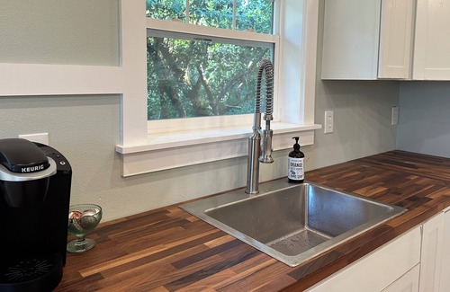 You have the entire house with fully equipped bright kitchen. Beautiful bathroom equipped with everything you will need including large towels, shampoo, conditioner and body wash. Super comfortable queen sized beds with high-end linens and extra pillows. This beats a regular hotel room any day.