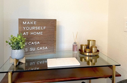 We have a total of two guest rooms that are available for rent: this unit and one other. Each room is 12x14ft and has an additional 2x9ft closet and has its own private bathroom. Sliding mirrored doors open to reveal a mini-fridge, Nespresso machine and small safe. We offer free wifi and a 55in wall-mounted SmartTV in each room that swivels for optimal viewing. Brand new 10in memory foam mattresses with fully zippered encasements are provided, as well as two memory foam pillows with allergy casings, linens and sheets. A 36in desk with a comfy chair, and some office supplies sit next to the large window that has a blackout curtain with light-blocking rails for those possible night-shifts that turn into day-slumbers. You have access to our laundry room with cleaning supplies and detergent, as well as our fully stocked kitchen and dining area. We have a detached garage with gym equipment - Peloton, elliptical, and treadmill, as well as free weights and bands.