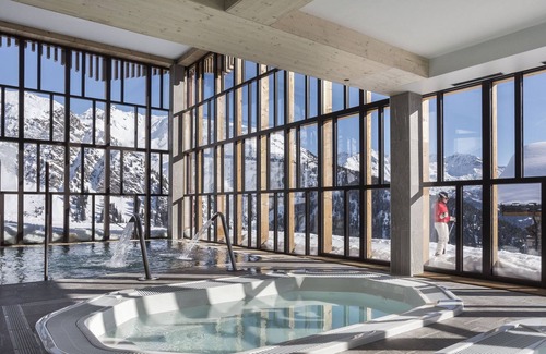 New, opening in February 2019: 1000m² aqualudic area located in the Hotel Alparena. The aqualudic area includes: swimming pool 15m x 6m + paddling pool, 2 Spas, 2 Turkish spas, 2 saunas, 1 fitness room (access forbidden for unaccompanied children under 16 years old; bathing cap obligatory - bathing shorts forbidden).
