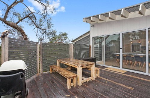 Nestled in a bush setting with elevated views across town to the ocean you can relax and enjoy the abundant bird life and visiting kangaroos. Anglesea - where the bush meets the sea.