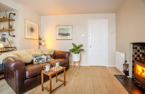 A walk down the garden path of a large period house brings you to the door of this thoughtfully planned retreat. Step inside, kick off sandy shoes in the hallway and head into the social heart of the apartment – the open-plan lounge/diner. With a bay window that lets sunlight flood in, this space is perfect for unwinding after days of Welsh adventure; sink into the soft seating, flick on the Smart TV and bask in the glow of the crackling wood burner. When stomachs start to rumble, find that the compact but well-appointed kitchen boasts everything needed to cook up romantic feasts, which can be enjoyed at the window-side dining table back in the main living space. At the end of each busy day away, retire to the sumptuous super-king-size bedroom and start the next day with a soak in the well-equipped shower room.
