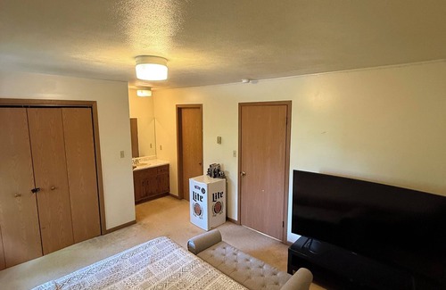 Unwind in State College at this lovely townhome. With 2 cozy bedrooms featuring a king and queen bed, as well as 2 bathrooms with a bathtub and shower, guests will feel right at home. Plus, there's an additional living space with a comfy twin bed for extra relaxation. Enjoy all that State College has to offer when you stay at our place.