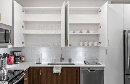 Experience comfort in our stylish 3BR/2BTH, perfect for business and leisure travelers. Enjoy modern amenities & relax in the open-concept living area w/ luxurious furnishings. Unwind in cozy bedrooms w/ plush bedding and elegant bathrooms. Stay connected w/ high-speed Wi-Fi & explore the vibrant local scene. Located in a charming neighborhood, our home offers easy access to top attractions, dining, and entertainment. Just 5 mins from downtown, popular restaurants, & convenient public transport.
