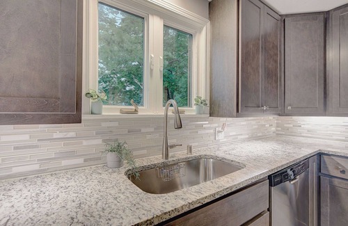 The kitchen creates an ideal spot to cook a full course meal for the entire group. With sleek countertops and new modern appliances, there is plenty of room for the entire family to enjoy.