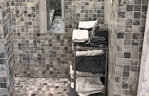 • 1 full bathroom with double vanity, impressive water pressure & large custom shower.