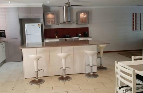 Our home is cool and breezy due to it's open plan double story design for the tropical conditions of lovely Cairns. We catch the sea breezes being only 3 streets back from the beach. We have aircons if need be. All modern, predominantly new decor with a casual, beach house vibe. It has a great deck and pool adjoining the house so has a great flow and you can easily dip in and and out all day as pool is attached to house, resort style, & not at the back of a garden. BBQ on the deck and relax by the pool.