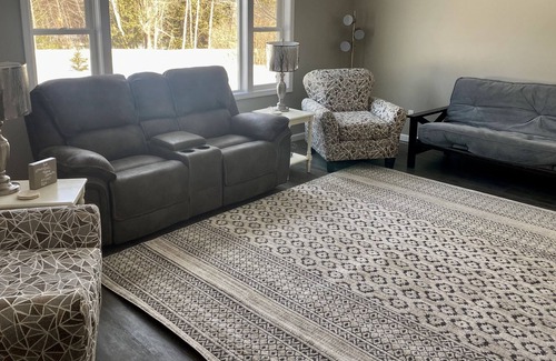 home offers a spacious living room, perfect for family fun, quiet relaxing moments to snuggle up with a good book, or watch the games on the 75” tv.