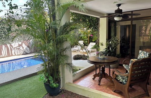 "The Beach House" is located at Residencial La Flor in Jaco, the only beach front gated community with 24 hour security, guest parking, Club House, pool and direct beach access. Gorgeous tropical gardens with it's own private pool, so you can relax and enjoy with your family and friends.