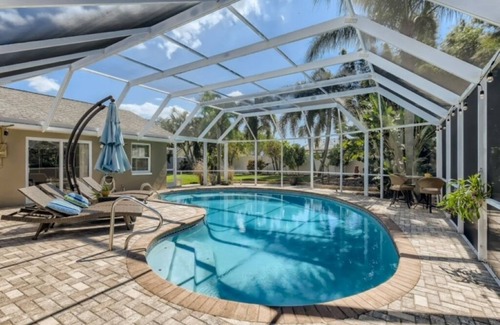 This Tuscan-style home is an excellent piece of paradise. Head inside through the beautiful double doors and be ready to be impressed with the charm and character this open floorplan property offers. Take a dip in the sparkling pool, and enjoy coffee on the covered lanai. This home sits less than a mile from the Gulf beaches and is located near great restaurants, shopping, and more. Welcomed to Florida living at its finest!