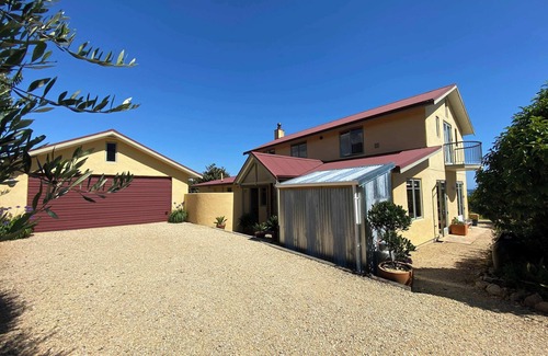 Outside, the villa offers beautiful outdoor living. The fully fenced garden is large and private, with multiple seating areas, a BBQ, an outdoor oven, and even a small walking track that winds through the property. Children will love the on-site playground, and guests are welcome to use the kayaks or help themselves to whatever fruit and vegetables are in season from the garden. There’s plenty of parking space for up to five cars, and pets are very welcome.