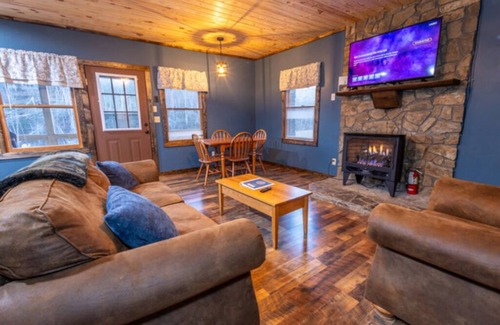 Discover serenity at the Twin Falls Cabin. Nestled above the picturesque North Toe River, Twin Falls is perfect for a family getaway. Need more space? Rent the top unit to create a two-story cabin that can accommodate 8 (joined by inside stairwell). Based on availability.