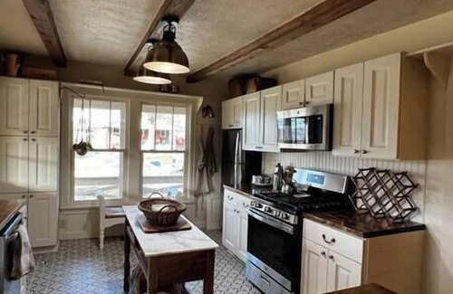 This home originally opened as the Staggs Hotel in 1945 to house the workers who built the local dams. Now, completely renovated, this cottage puts you in the middle of all that the Norfork area has to offer. This 7 bedroom, 5 bath home sleeps 20 and is within easy walking distance to local restaurants, a grocery store, and the public access at the confluence of the White and North Fork Rivers. World Class trout fishing and other outdoor activities are within easy access during your stay. Twin Rivers Stone Cottage has a classic "giraffe field stone" exterior which is a type of construction that is very unique to North Arkansas that was popular during the 1940's. We have attempted to maintain classic fishing lodge decor throughout the home. On the main floor, there are three bedrooms (with king, full, and two twin beds, respectively) and two full baths, as well as a full kitchen and spacious dining area. Each of the four upstairs bedrooms have a half bathroom within the respective sleeping areas. A shower in the upper hallway is shared among these four upstairs bedrooms. The living room provides comfortable seating and includes a piano and television with cable and access (via your subscription) to major streaming services. The living room wall is lined with classic books and interesting "treasures" from days gone by. The newly remodeled kitchen has all new appliances and is more than capable of providing food service to the fully occupied property. The dining room seats ten easily at a long custom-built harvest table, with additional seating for up to four at the kitchen counter. There is a spacious porch on the back of the home with rocking chairs, as well as a side porch with a swing. Additional relaxation is available at the fire pit and hammock ring in the backyard, which provides a calming space for reflection after a long day of fishing on the rivers or boating on beautiful Lake Norfork. The basement features a laundry with washer and dryer, as well as a poker and ping pong table. As with many basements, the head clearance is about 6 feet with exposed floor joists, so we recommend caution for persons who are tall enough to bump their heads in this area. The entire property (main floor, upstairs, basement and entire yard) is included in the rental. We can be reached through the messaging feature on the Airbnb app/website. The home is in the middle of the small town of Norfork, Arkansas, making for easy walking distance to the local grocery and liquor store, microbrewery, several restaurants, a coffee shop, as well as the public access area to the White and North Fork Rivers. Numerous options for fishing, hunting, kayaking, water sports, mountain biking, hiking, and sight-seeing are within easy reach of this property during your stay. The neighbors are friendly, the community is very safe, and access to various outdoor activities is easy. If your goal is relaxation, you will find this a quiet community where you can easily rest and recuperate. Once arrived at our home, you will be within easy walking distance of most attractions in Norfork. It will be beneficial to have a vehicle at your disposal during your stay for certain activities. Be advised, there is no local Uber, Lyft or taxi service, as the community is quite rural.