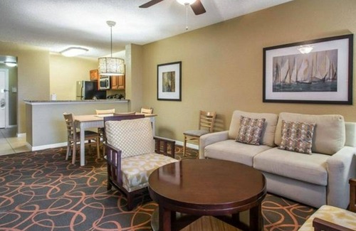 Location, location, location! Orlando’s Sunshine Resort™ is literally minutes from the excitement and adventure of the world's most beloved theme parks including Walt Disney World®, Universal Studios® Florida and SeaWorld® Orlando, yet the resort is a peaceful respite where you can unwind from the day and map out the next day’s game plan. Resort accommodations were designed with families in mind, and feature 2-bedroom suites measuring between 1,200 and 1,380 square feet that can accommodate up to 8 guests. Amenities include full kitchens and baths, master bedrooms, separate living and dining areas, and screened balconies and porches, many of which overlook the oversized resort pool.