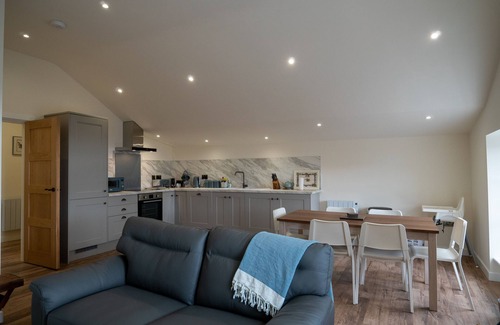 Two large bedrooms: one with a king bed and the other with two single beds, one of which is a trundle bed that can accommodate a 5th person by prior arrangement. Two bathrooms, one with bath and over-bath shower, one with shower, heated towel rails Intelirad smart electric heaters throughout